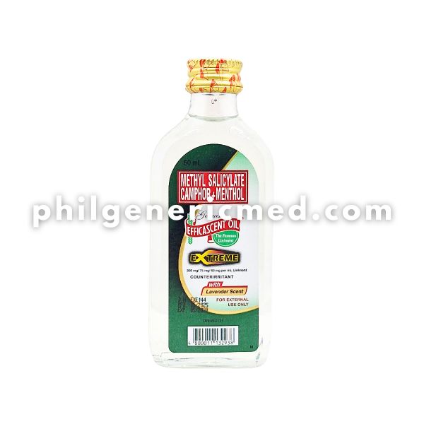 Efficascent Oil Extreme is a pain-relieving liniment that provides fast relief from muscle and joint pain. Its cooling and warming effect, enhanced with lavender scent, helps relax tired muscles, ease tension, and promote comfort.