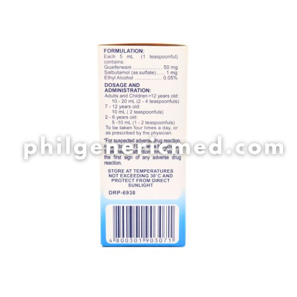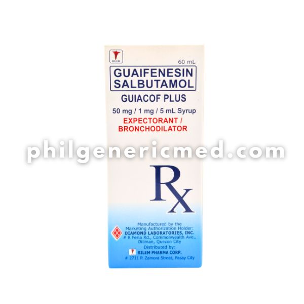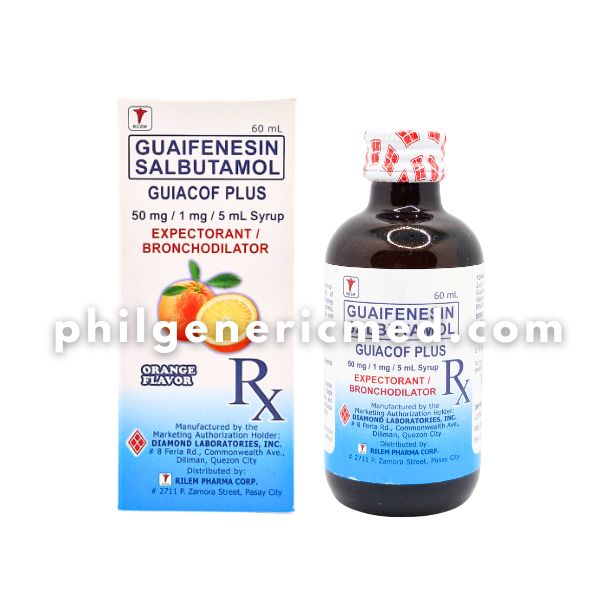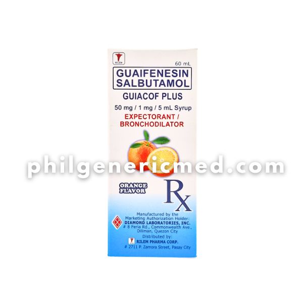 Guiacof Plus Syrup combines Guaifenesin (to loosen phlegm and make coughs more productive) and Salbutamol (to relieve bronchospasm by relaxing airway muscles).