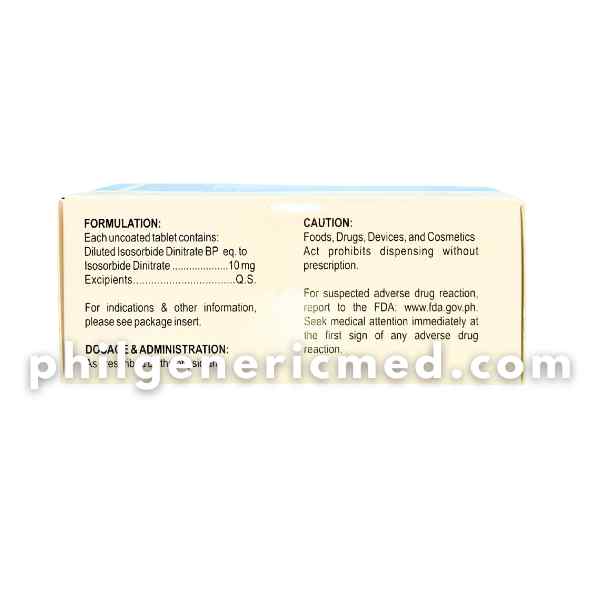 Isosorbide dinitrate is a nitrate medicine that works by relaxing and widening blood vessels, allowing blood to flow more easily to the heart. This reduces the heart’s workload and improves oxygen supply to heart muscle, helping prevent chest pain.
