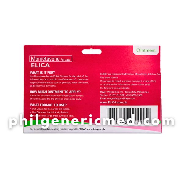 Elica Ointment contains Mometasone Furoate, a potent topical corticosteroid used to relieve inflammation and itching associated with various skin conditions. It works by reducing redness, swelling, and allergic reactions on the skin. The ointment form is ideal for dry, thick, or scaly skin lesions.