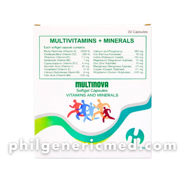 MULTINOVA® Softgel Capsules is a multivitamin and mineral dietary supplement formulated to help support overall health and wellness. It contains essential vitamins and minerals that help maintain energy, immune function, and proper body metabolism.