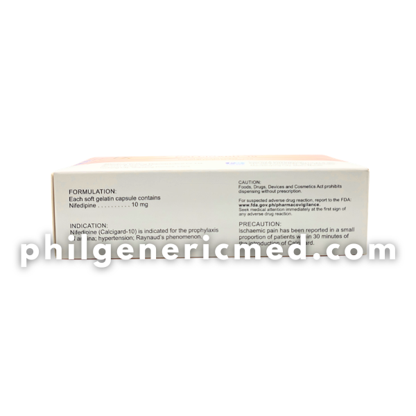INDICATION: Nifedipine (Calcigard-10) is indicated for the prophylaxis of angina; hypertension; Raynaud’s phenomenon.