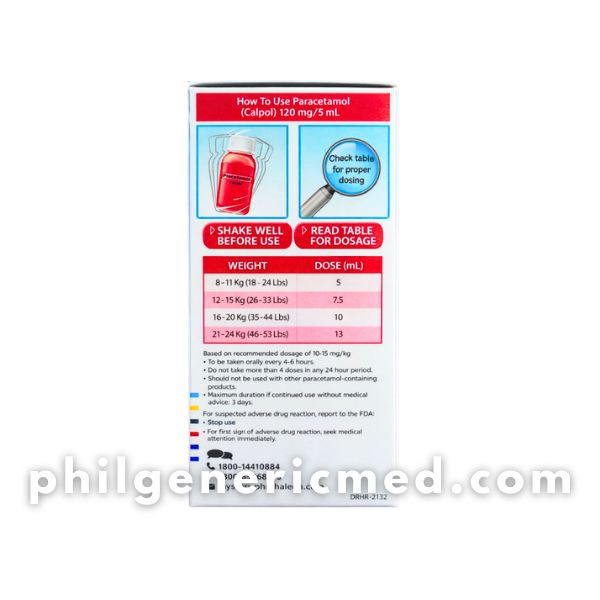 Paracetamol CALPOL 120 mg/5mL Suspension (Children 2–6 Years, Strawberry Flavor) 60m 1’s