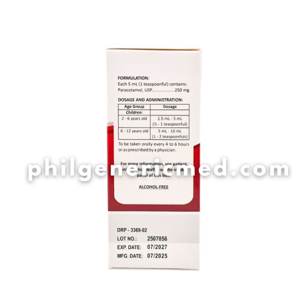 FORMULATION: Each 5 mL (1 teaspoonful) contains: Paracetamol, USP. .250 mg