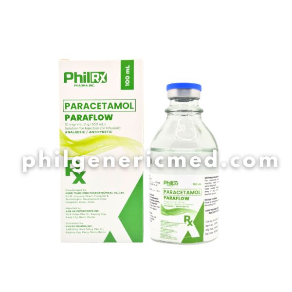 Paracetamol (PARAFLOW) IV Infusion is an injectable formulation used for the management of pain and fever when oral administration is not possible or not appropriate. It provides rapid onset of action and is commonly used in hospital settings for post-operative pain, moderate pain, and high fever.