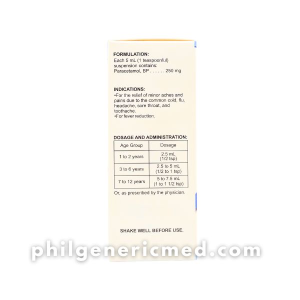 FORMULATION: Each 5 mL (1 teaspoonful) suspension contains: Paracetamol, BP 250 mg