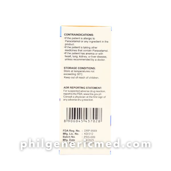 CONTRAINDICATIONS: If the patient is allergic to Paracetamol or any ingredient in the product. If the patient is taking other medicines that contain Paracetamol. If the patient has anemia or with heart, lung, kidney, or liver disease, unless recommended by a doctor.