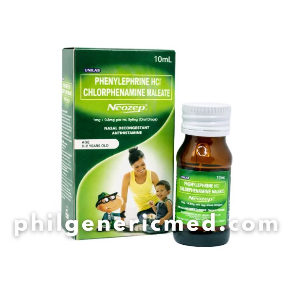 NEOZEP oral drops contain phenylephrine hcl (nasal decongestant) and chlorphenamine maleate (antihistamine). It is formulated to relieve nasal congestion and allergy symptoms in infants and young children.