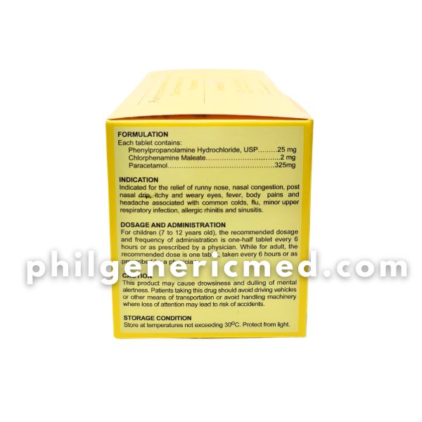 Phenylpropanolamine Hydrochloride Chlorphenamine Maleate Paracetamol SYMDEX-D 25mg/2mg/325mg Tablet 100’s