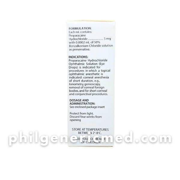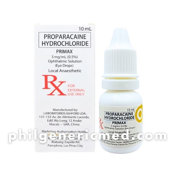 Proparacaine Hydrochloride PRIMAX 0.5% Ophthalmic Solution is a sterile eye drop solution used as a local anesthetic for the eyes. It works by temporarily numbing the surface of the eye to prevent pain and discomfort during eye examinations or minor ophthalmic procedures. This medication acts quickly and provides short-term anesthesia to the cornea and conjunctiva.