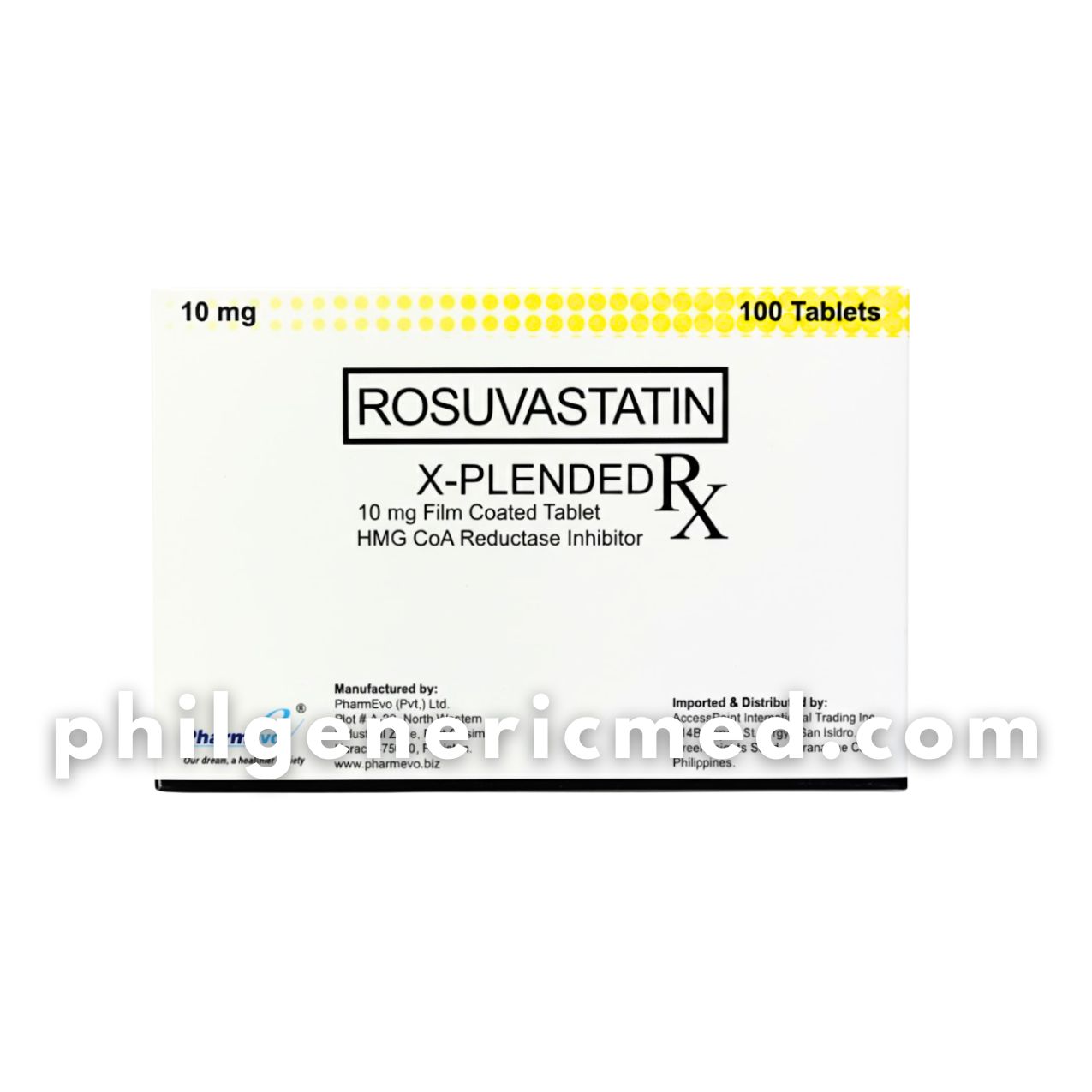 Rosuvastatin X-Plended 10 mg contains Rosuvastatin, a statin (HMG-CoA reductase inhibitor) used to lower cholesterol levels in the blood.