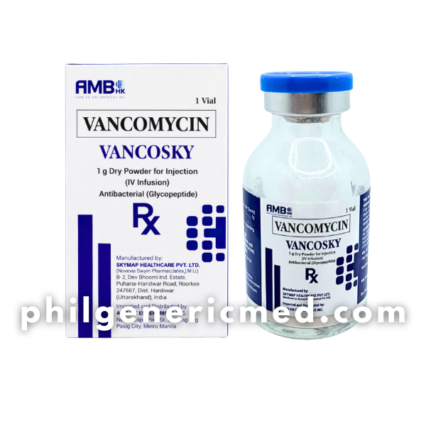 VANCOMYCIN VANCOSKY is a glycopeptide antibiotic used to treat serious bacterial infections caused by gram-positive organisms. It works by inhibiting bacterial cell wall synthesis, preventing bacteria from growing and multiplying. This medication is supplied as a dry sterile powder in a vial that must be reconstituted before administration and is given through intravenous (IV) infusion under medical supervision in hospital or clinical settings.
